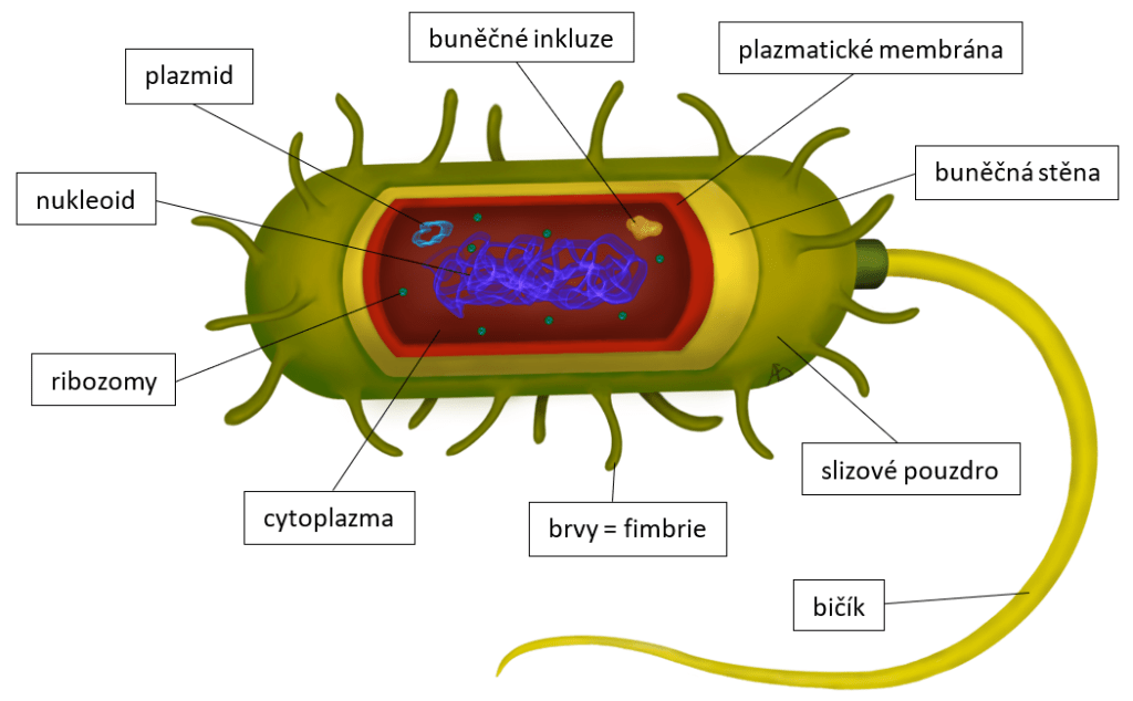 Obrázek popisu prokaryotické buňky.